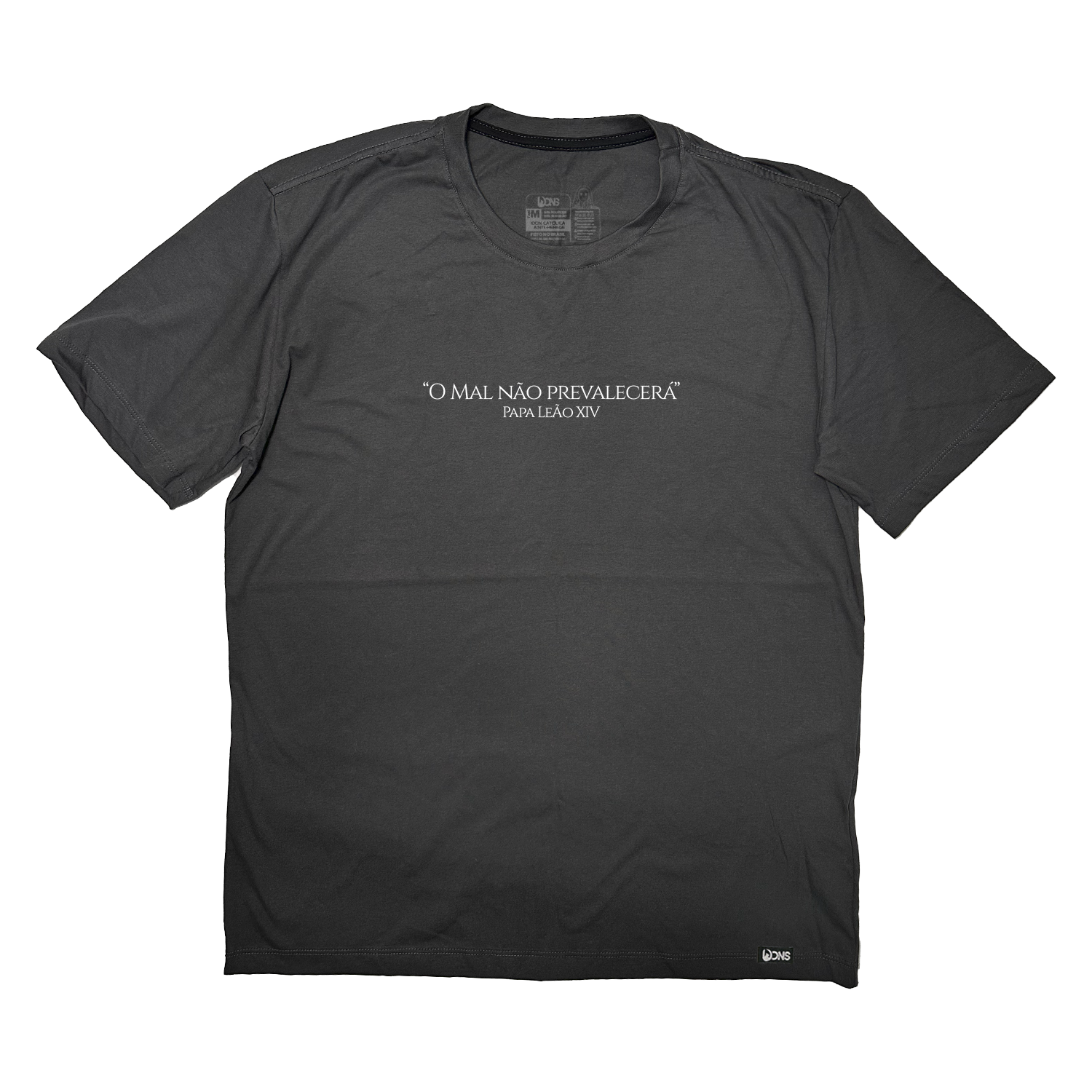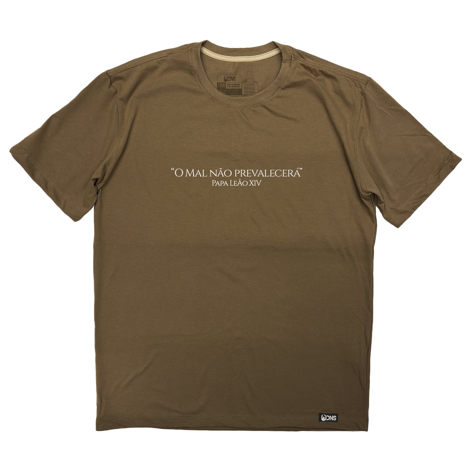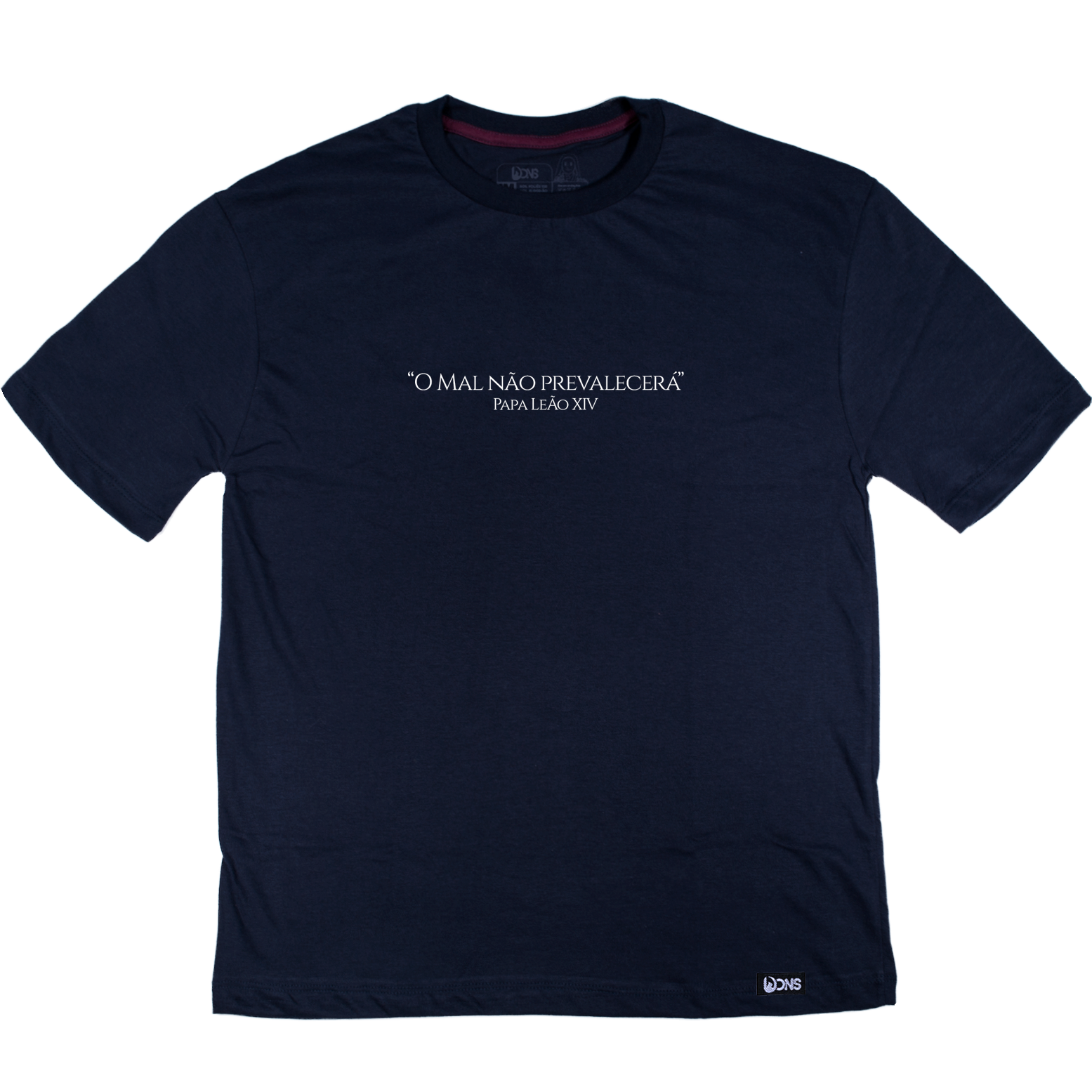 A Camiseta “O Mal Não Prevalecerá” carrega uma mensagem poderosa dita pelo Papa Leão XIV, estampada com destaque no peito: uma afirmação firme da vitória da luz sobre as trevas, da graça sobre o pecado, da Igreja sobre as forças do mal.