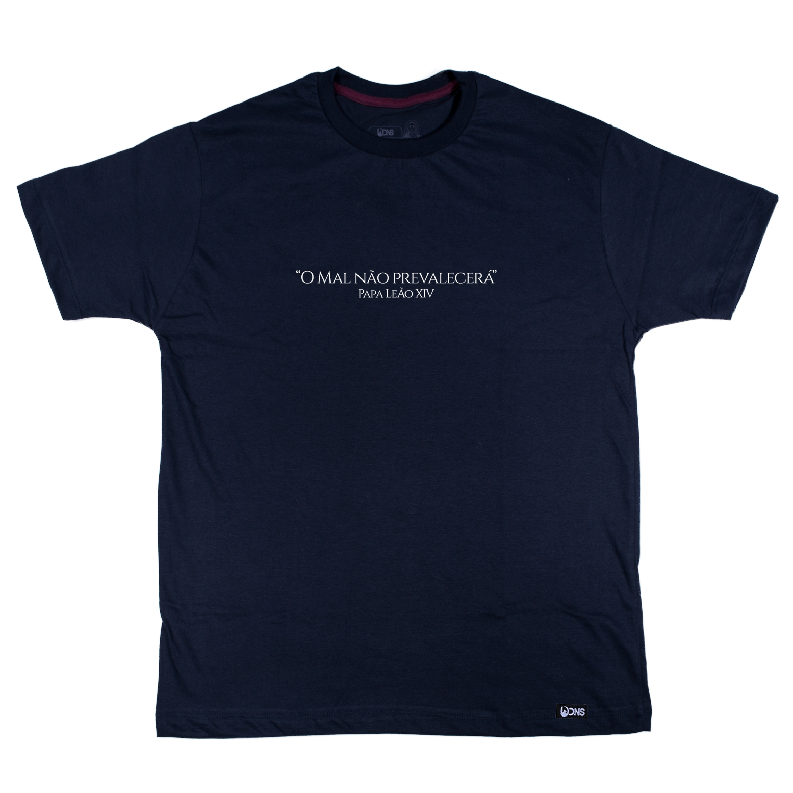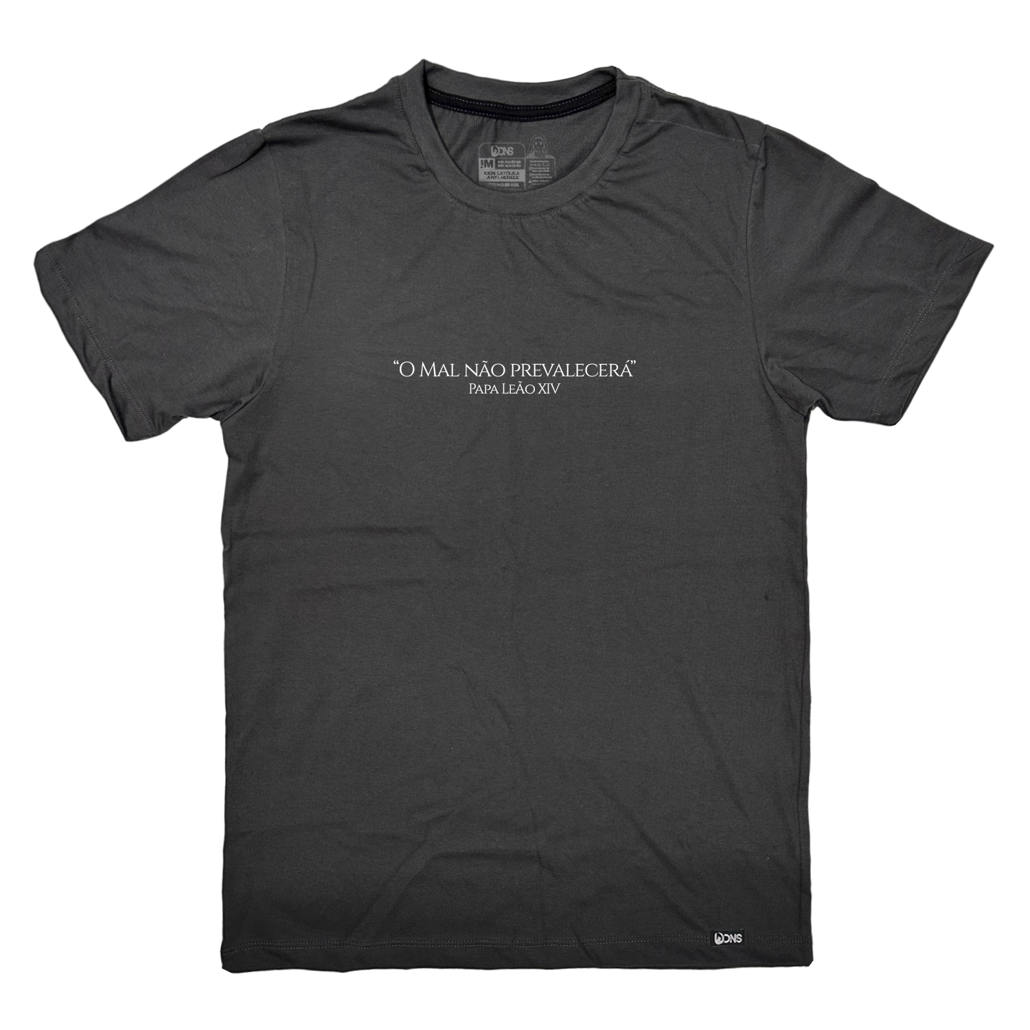 A Camiseta “O Mal Não Prevalecerá” carrega uma mensagem poderosa dita pelo Papa Leão XIV, estampada com destaque no peito: uma afirmação firme da vitória da luz sobre as trevas, da graça sobre o pecado, da Igreja sobre as forças do mal.